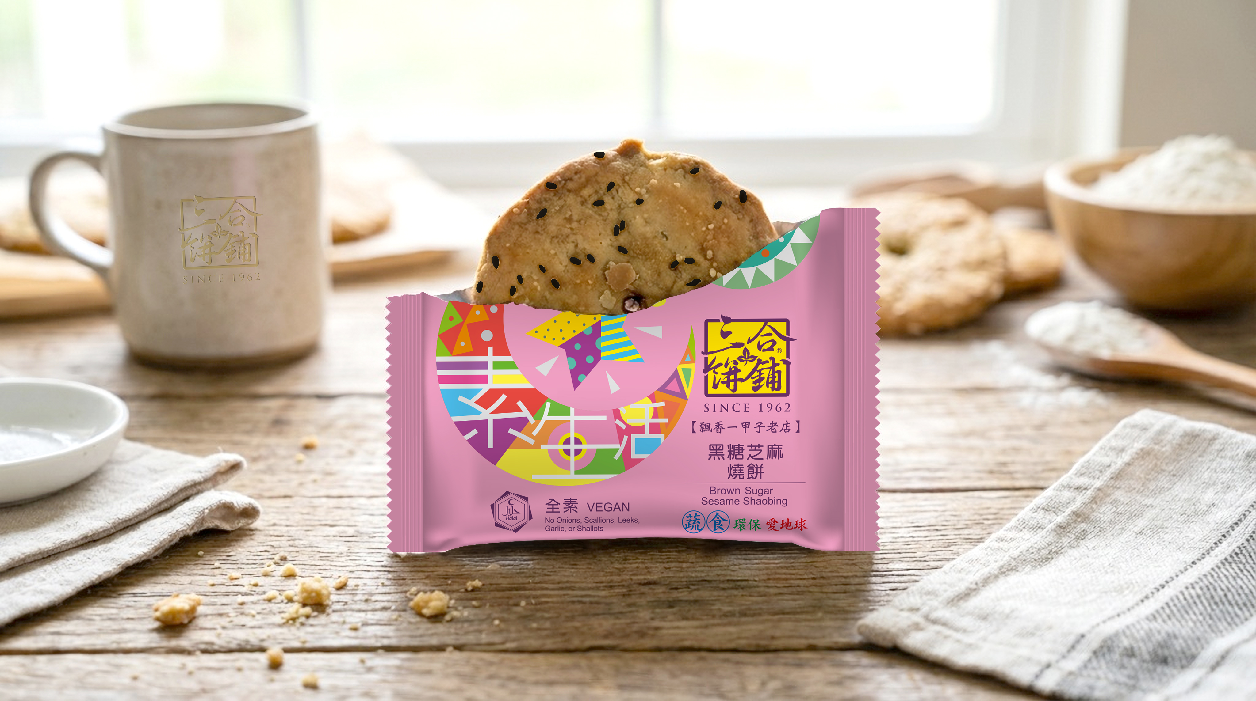 成份:無漂白麵粉、非基改芥花油、黑糖、芝麻、有機鹽、小蘇打、水果發酵液(鳳梨、黑糖)